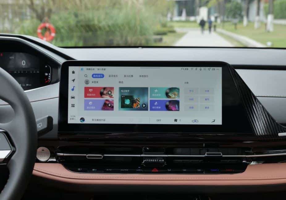 В оснащении салона цифровая приборная панель с экраном 10,25 дюйма, медиасистема с экраном 12,3 дюйма и обновлениями по воздуху, беспроводная зарядка для смартфона, атмосферная подсветка с 64 цветами, система распознавания лица, телематическая система (рядом функций можно управлять со смартфона), панорамная крыша и электропривод двери багажника.