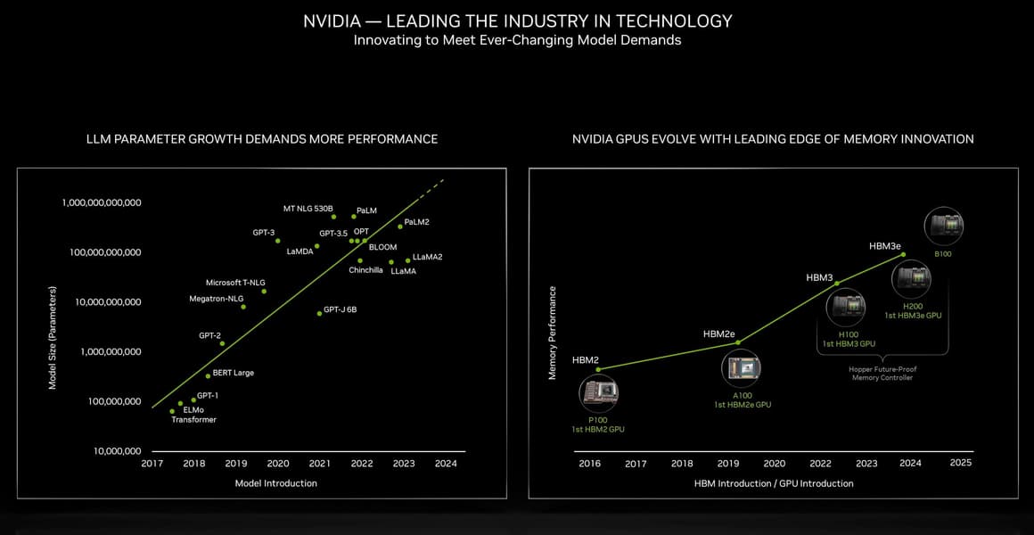 Никаких технических подробностей, конечно, нет, но новый ускоритель, вероятно, сохранит память HBM3e, как у анонсированного сегодня H200, так как нового типа памяти в следующем году не ожидается.