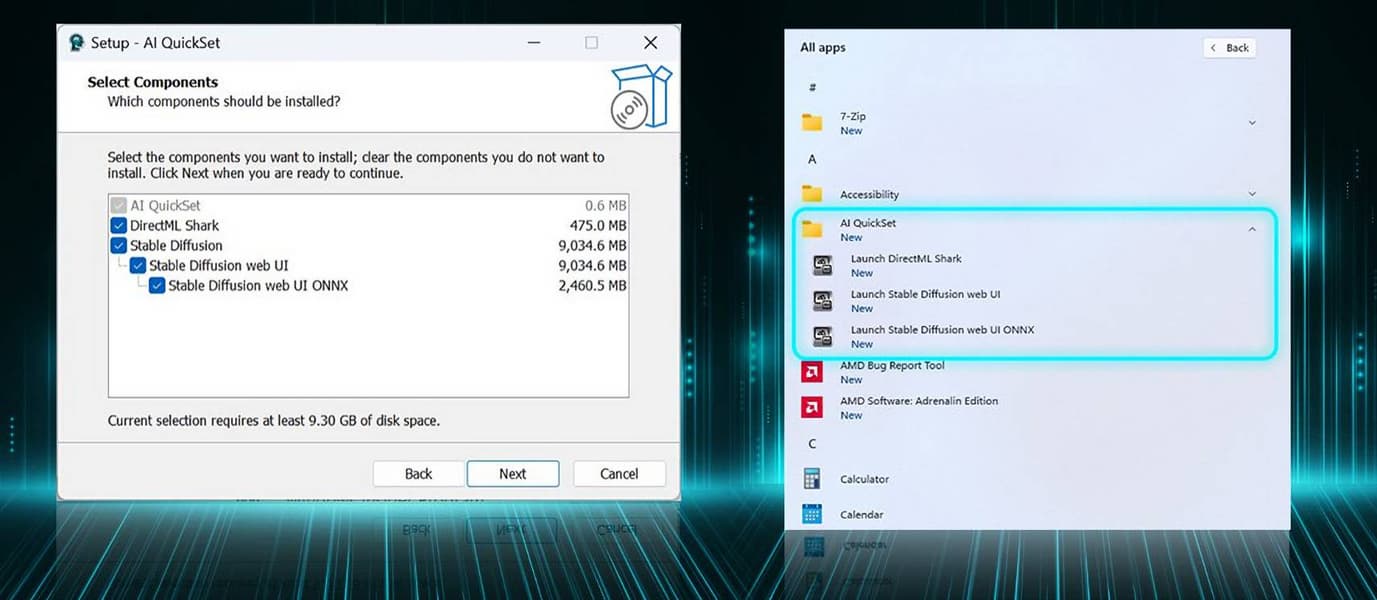 ПО фактически помогает установить на ПК с Windows 11 другие приложения. В частности, Shark Studio AI и веб-интерфейс Stable Diffusion. Также AI QuickSet гарантирует, что система обновлена и имеет все нужные библиотеки, включая TensorFlow и PyTorch.