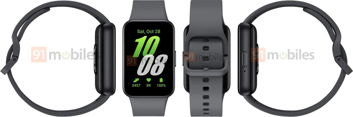 Судя по этим картинкам, у Samsung Galaxy Fit3 будет как минимум три цвета: серебристый, черный и золотистый. А главным отличием от Fit2 станет более крупный экран, и вот в этом и проявляется его схожесть с Xiaomi Smart Band 8 Pro.