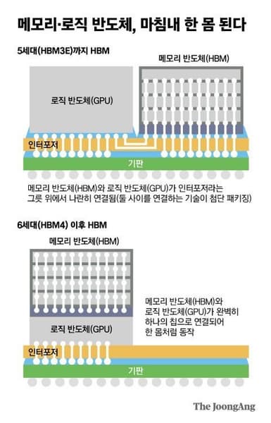 Сейчас память HBM размещают на одной подложке с CPU или GPU, но рядом. Размещение памяти на CPU/GPU не только изменит способ обычного соединения логических устройств и устройств памяти, но и изменит способ их изготовления.