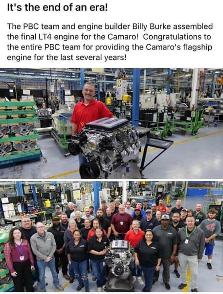 Компания Chevrolet построила последний двигатель LT4 V8 с наддувом, предназначенный для Camaro ZL1 2024 года, прежде чем он будет снят с производства.