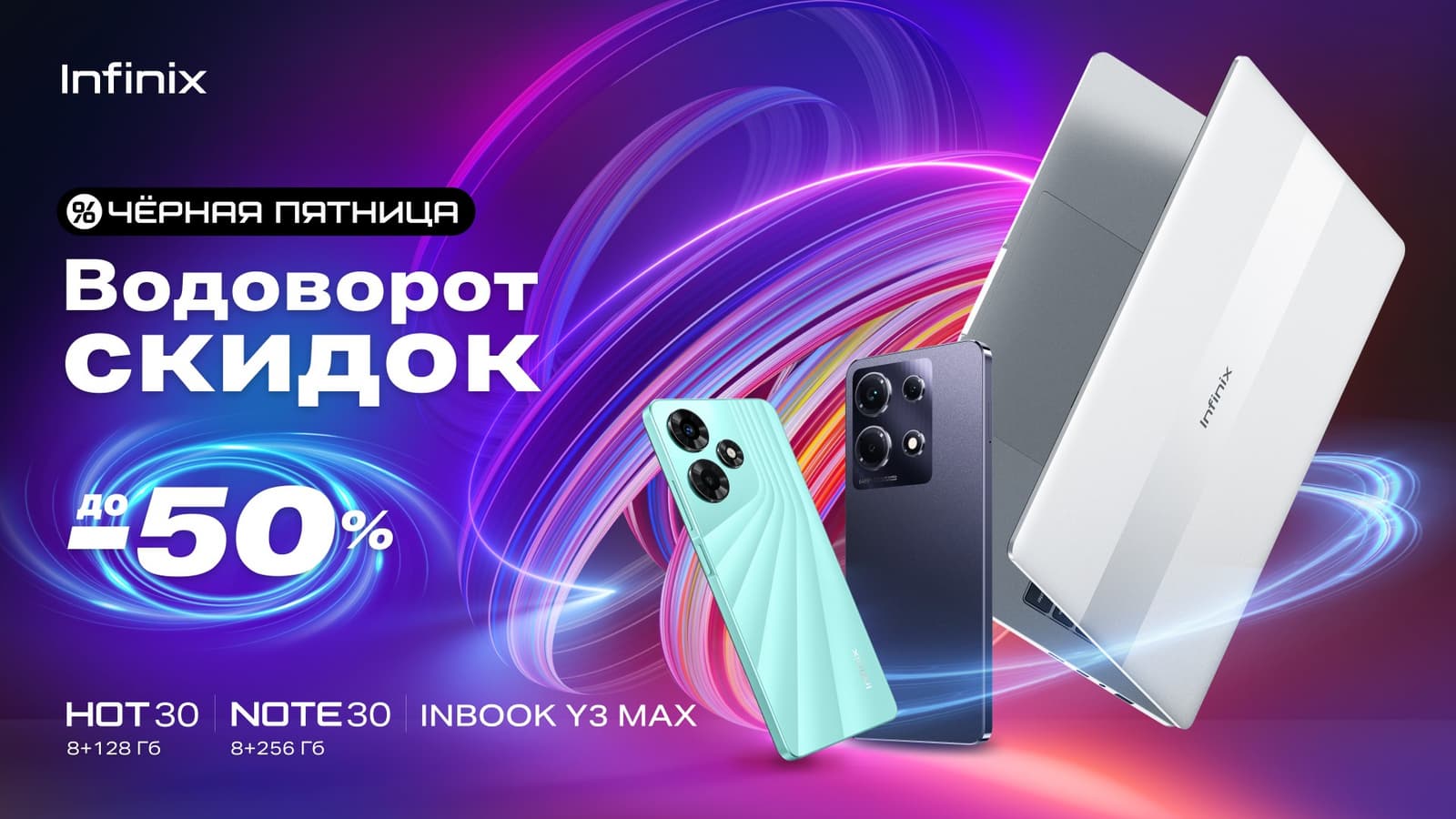 Infinix объявила о скидках до 50% на свои смартфоны, ноутбук Inbook X3 Plus и аксессуары. Предложение будет действовать до 4 декабря 2023 года в основных сетях и на маркетплейсах.