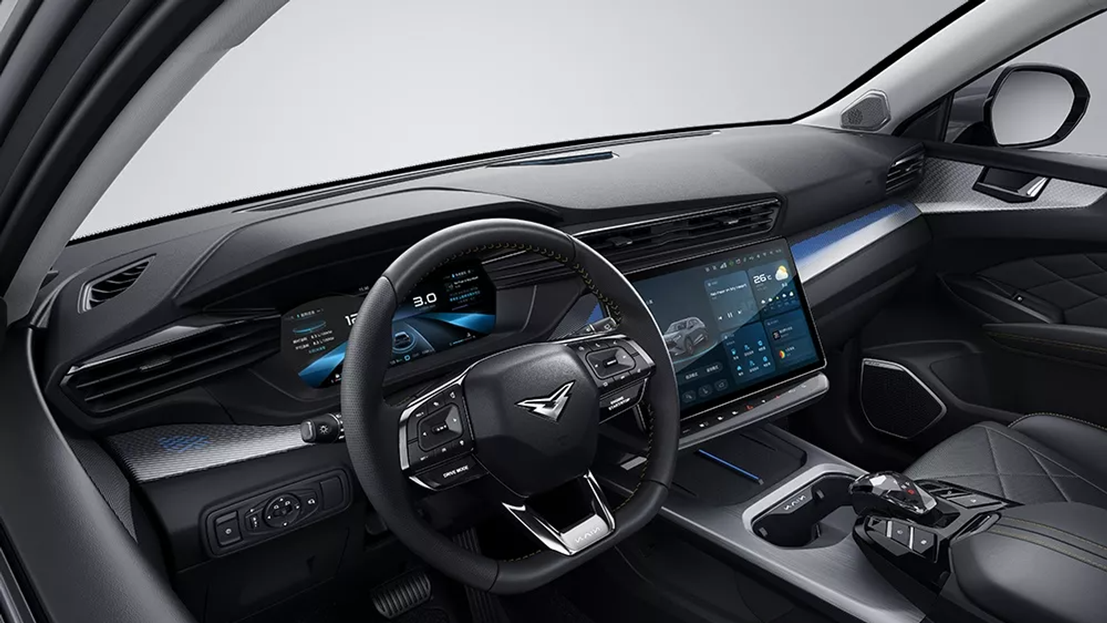 Автомобиль комплектуется светодиодной оптикой, панорамной крышей, полностью цифровой приборной панелью размером 12,3 дюйма, мультимедийной системой с сенсорным экраном диагональю 14,6 дюйма, двумя слотами беспроводной зарядки. При открывании двери на землю проецируется логотип Kaiyi.