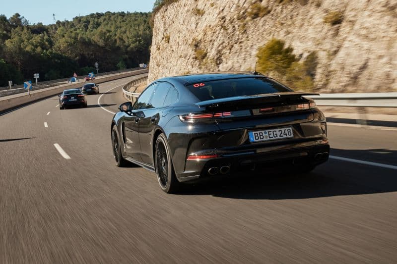 Panamera 2024 получит иной передний бампер с длинным и узким воздухозаборником, по краям которого расположены серебристые декоративные элементы. Также автомобиль получит новые фары с четырьмя характерными светодиодными элементами в каждой и фирменной технологией Porsche HD Matrix.