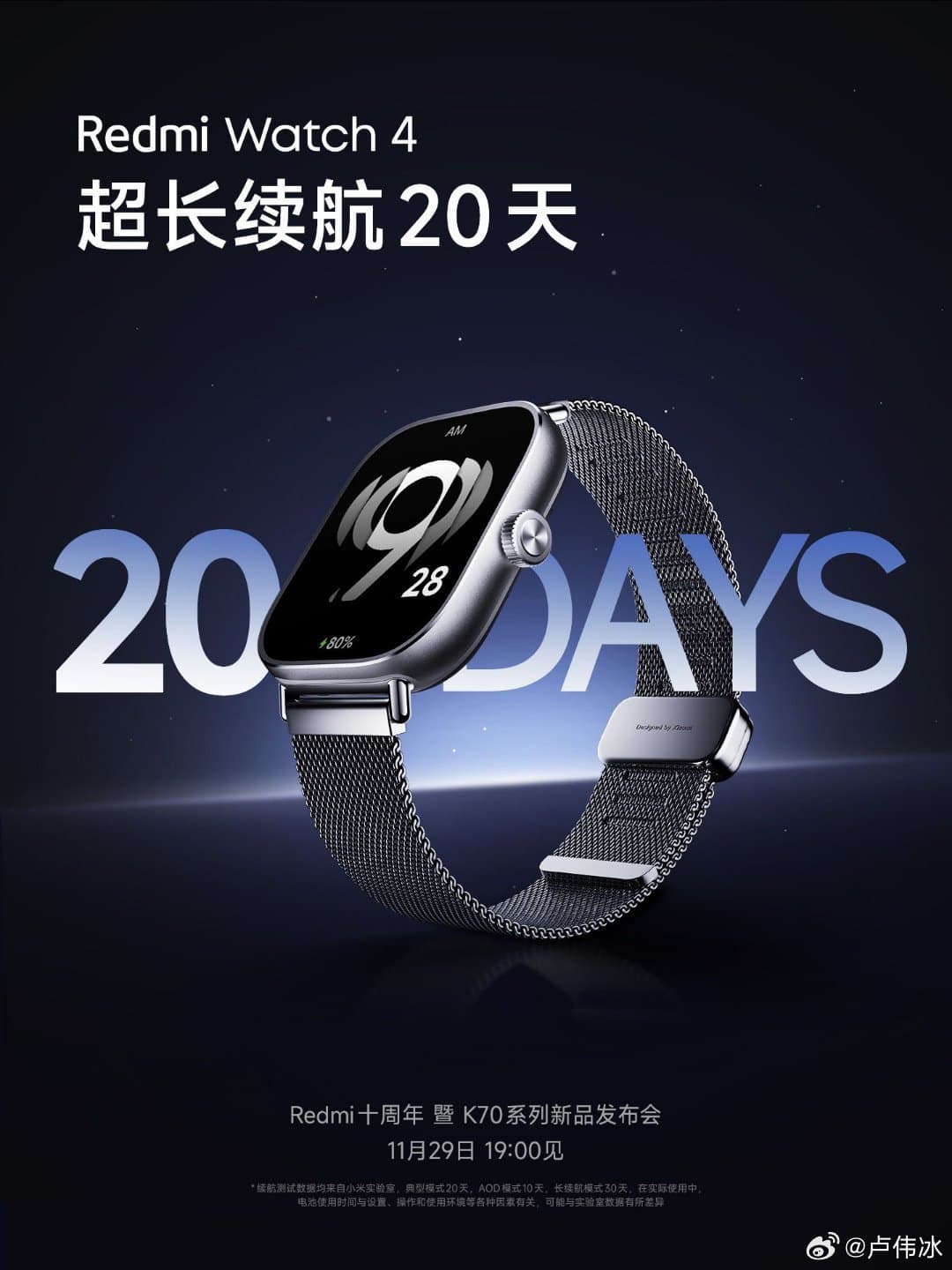 Лу Вейбинг, президент Xiaomi Group, президент международного отдела и генеральный менеджер бренда Redmi, напомнил, что на этой неделе вместе со смартфонами Redmi K70 будут представлены новые умные часы.