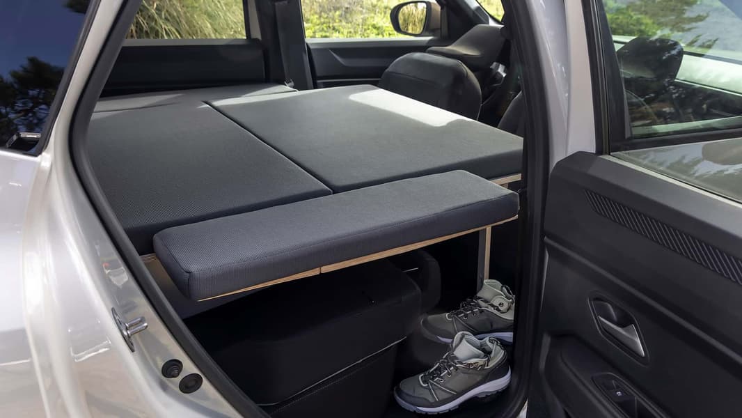 Для Duster третьего поколения предусмотрен пакет Sleep Pack — он позволяет разместить в салоне двуспальную кровать. Также в составе пакета столик и бокс для хранения различных вещей.