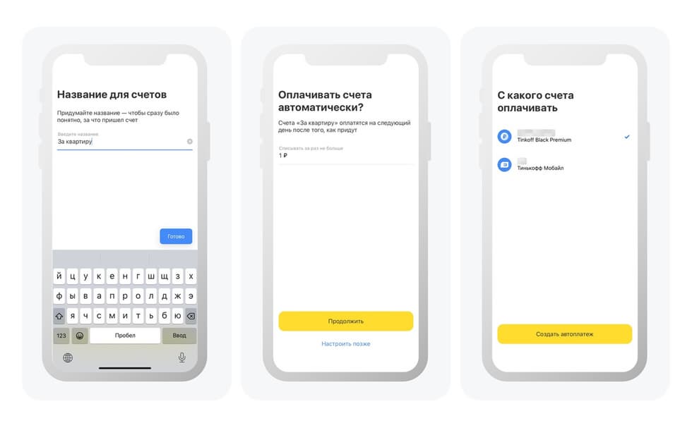 - получение уведомлений о новых счетах: квитанции приходят автоматически в личный кабинет от провайдеров, которые уже подключены к платформе «Тинькофф» по прямому договору;