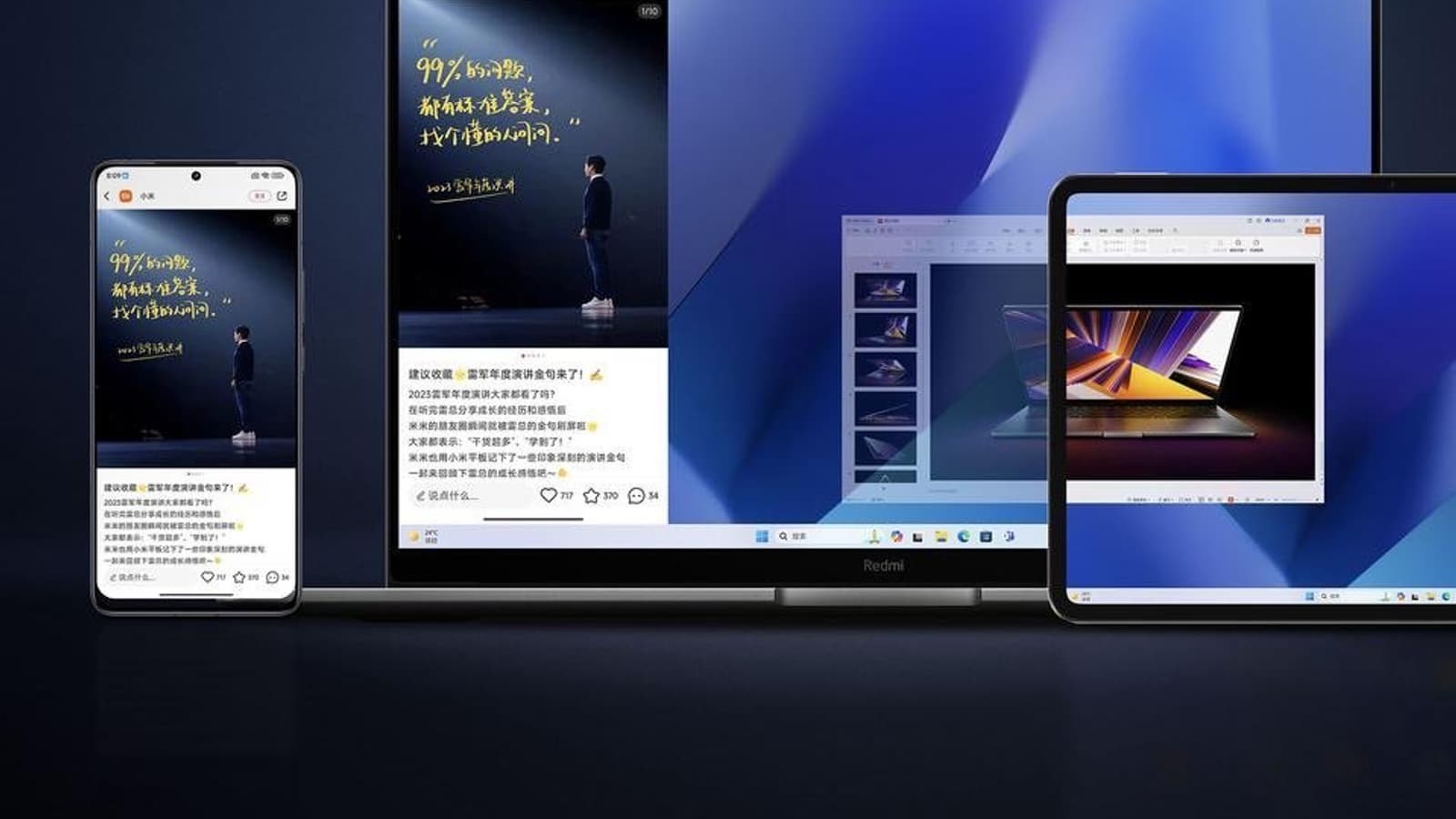 После вчерашнего анонса линейки смартфонов Redmi K70 и ноутбуков RedmiBook 2024 Лу Вейбинг, президент Xiaomi Group, президент международного отдела и генеральный менеджер бренда Redmi, опубликовал несколько изображений, описывающих возможные сценарии использования.