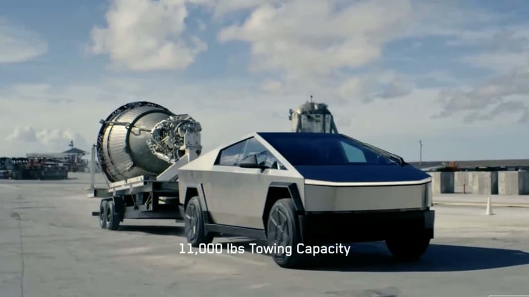 Во время премьеры показали много интересных видеороликов. Например, как в Cybertruck стреляют из пистолета-пулемета MP5, и пули не пробивают кузовные панели. Стреляли и из пистолета-пулемета Томпсона (естественно, его современной версии) – с тем же успехом. А еще показывали, как «Киберзверь» тягает за собой прицеп: его масса может достигать 5 тонн. Это важно для тех, кто использует пикапы по назначению. А в кузове пикап может перевезти 1,125 тонны груза.