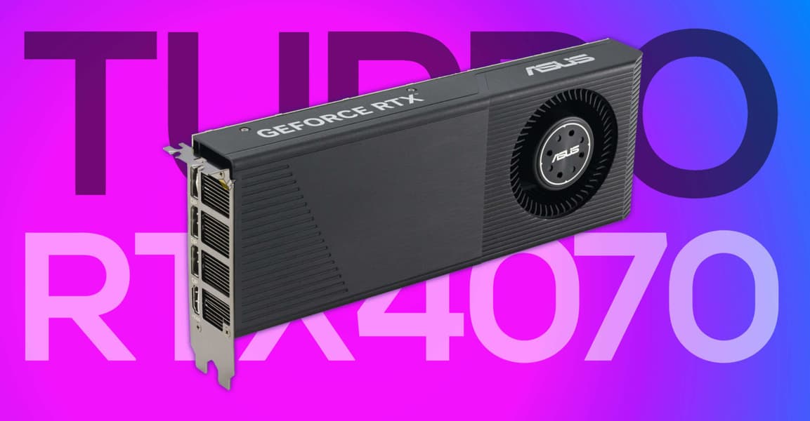 Модель GeForce RTX 4070 Turbo занимает лишь два слота расширения и выбрасывает горячий воздух за пределы корпуса. Впрочем, обычно такие охладители при этом весьма изрядно шумят.