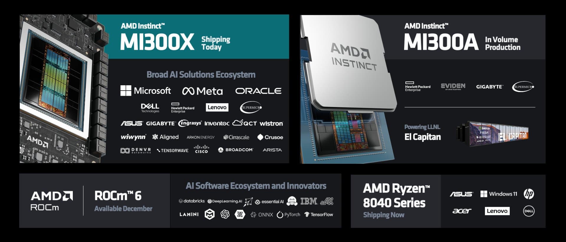 Монструозные специализированные чипы Instinct MI300A и Instinct MI300X компания AMD представила ещё в июне, но лишь сейчас она объявила о доступности этих продуктов и заодно раскрыла больше деталей.
