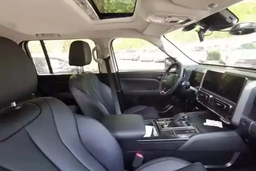 Внутри новый Haval H9 выглядит как многие современные кроссовер марки. Перед водителем цифровая приборная панель, по центру передней панели — крупный экран медиасистемы. Интересно, что рукоятка коробки передач (судя по виду, как у Tank 300) осталась на центральном тоннеле, хотя многие автопроизводители заменяют её на подрулевой рычажок, освобождая место между передними креслами, например, для подстаканников или беспроводной зарядки. Под центральным экраном находится блок физических клавиш управления климатической системой. Примечательно, что модной панорамной крыши нет, вместо неё обычный люк.