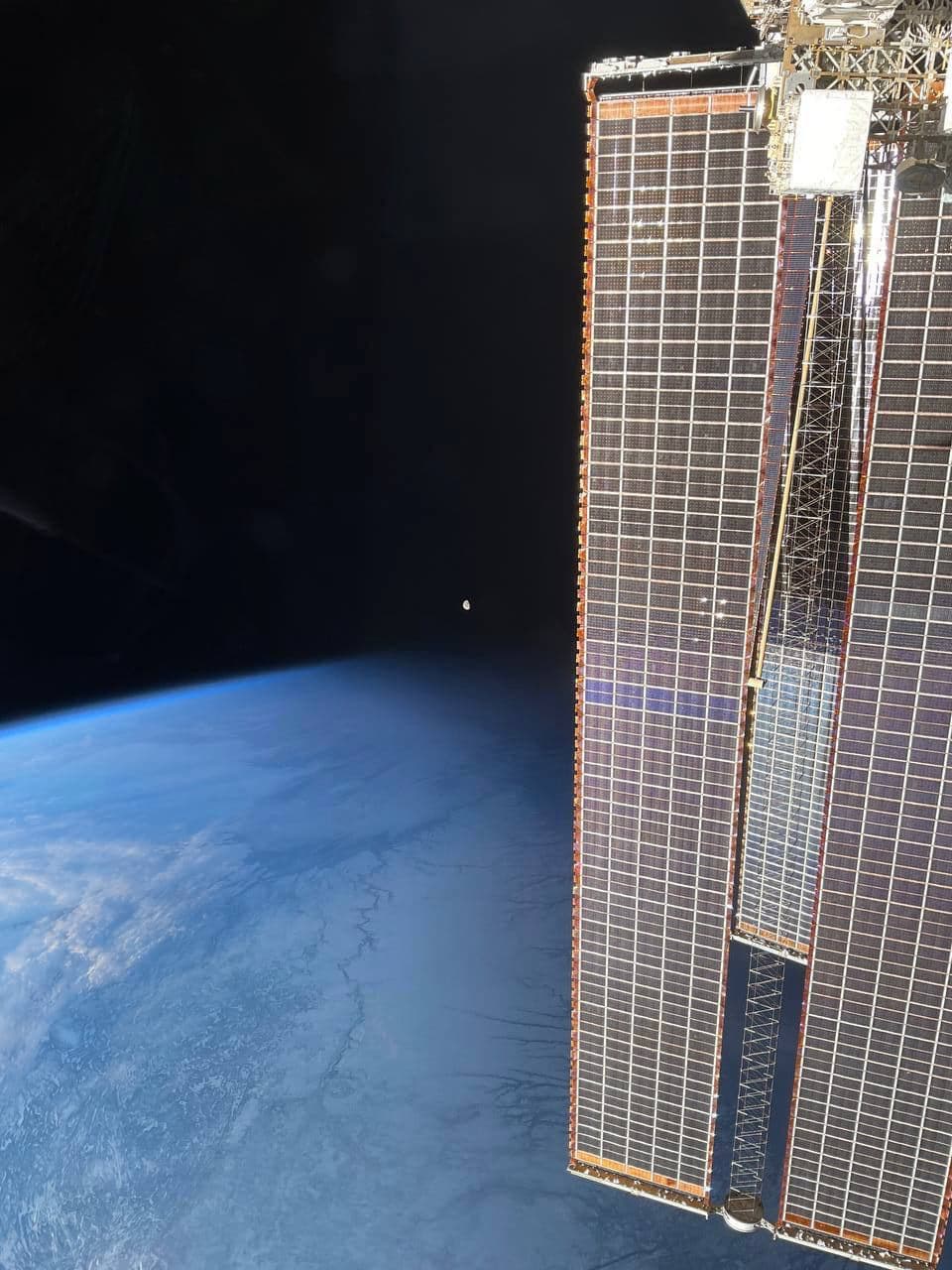 Мы называем это явление «солнечные орбиты». В четверг поздним вечером у нас был заключительный настоящий закат (хоть ночь и длилась меньше 10 минут), а теперь практически всю неделю — до 14 декабря — МКС будет постоянно освещена солнцем! И только вечером 14 декабря начнутся небольшие периоды, когда МКС спрячется от лучей Солнца за планетой. А привычные 30+ минут ночи на каждый 92-минутный виток вернутся к нам только в январе.