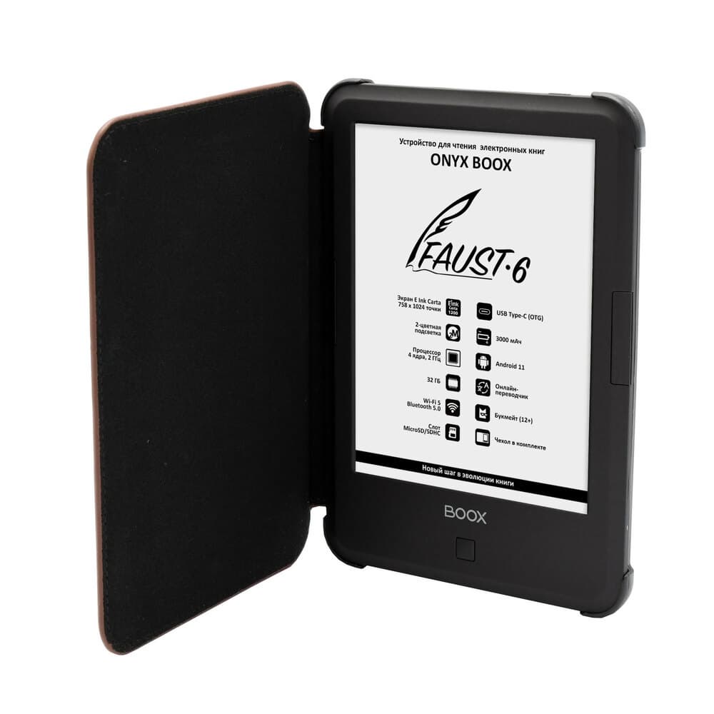 В России начались продажи нового ридера Onyx Boox Faust 6. Модель получила 6-дюймовый сенсорный экран E Ink последнего поколения Carta 1200 с разрешением 758 × 1024 пикселя. Его встроенная подсветка выполнена по технологии Moon Light 2, она позволяет регулировать цветовую температуру и не имеет мерцания, а с помощью функции Snow Field можно улучшить качество изображения за счёт снижения количества артефактов при частичном обновлении экрана.