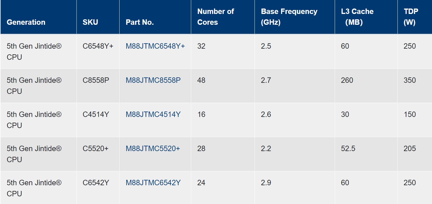Пока одни китайские компании разрабатывают собственные GPU, другие берут продукты глобальных гигантов и переделывают их в продукты для Китая. Компания Montage Technology представила линейку процессоров Jintide пятого поколения. Но это не собственная разработка Montage Technology, а фактически просто CPU Intel.