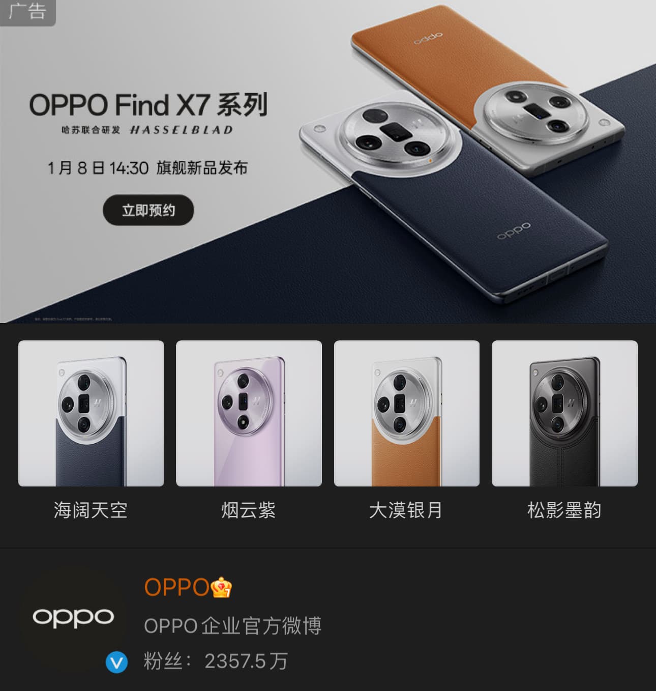 Oppo наконец-то объявила дату официальной премьеры своих новых флагманов. Линейка Oppo Find X7 дебютирует в Китае 8 января 2024 года, в 14:30 по пекинскому времени (09:30 по московскому времени).
