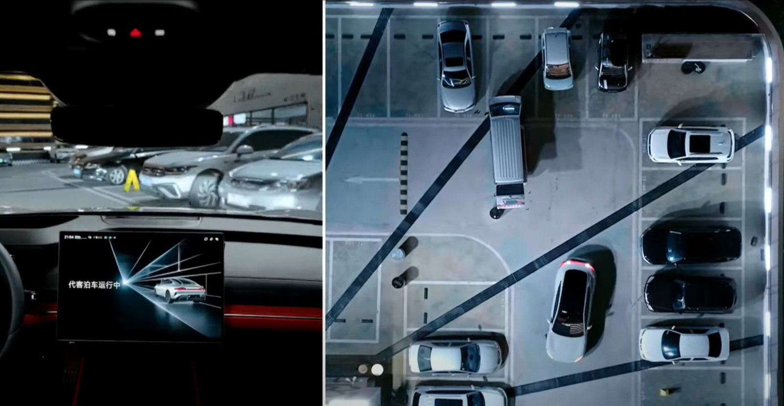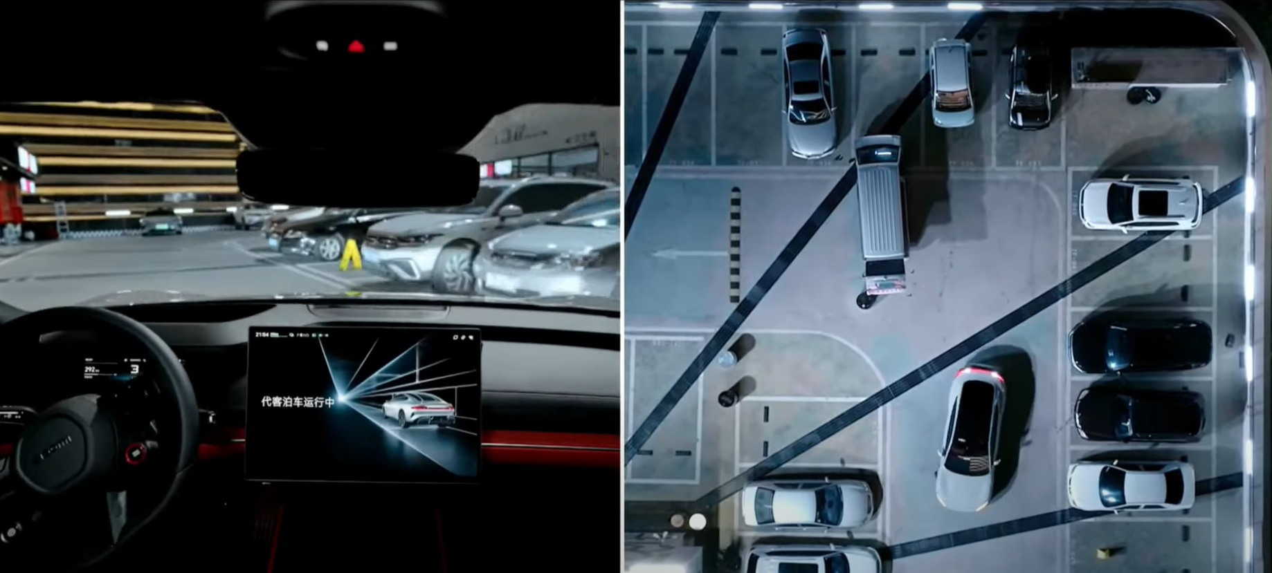 В ролике показано, как водитель SU7 подъезжает к въезду в гараж, затем нажимает кнопку на экране информационно-развлекательной системы и выходит. Затем машина въезжает в гараж и самостоятельно проезжает по разным уровням. На каком-то этапе он сталкивается нос к носу с Audi A7, но разворачивается, уступая дорогу Audi, и продолжает свой путь к верхнему уровню парковки. Затем он находит подходящее парковочное место и въезжает на него задним ходом.