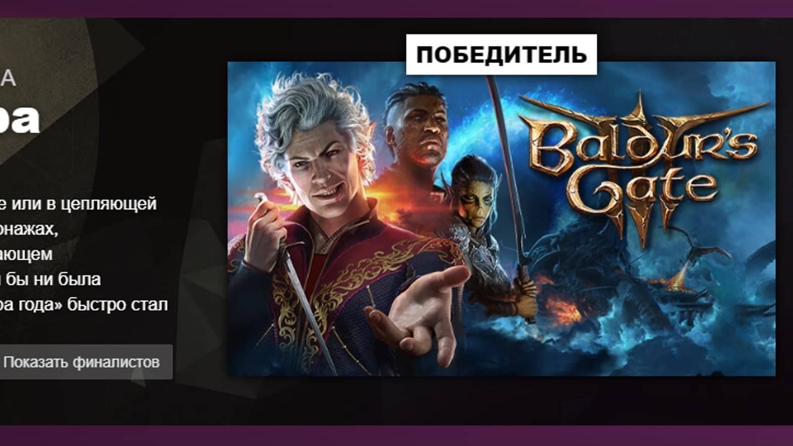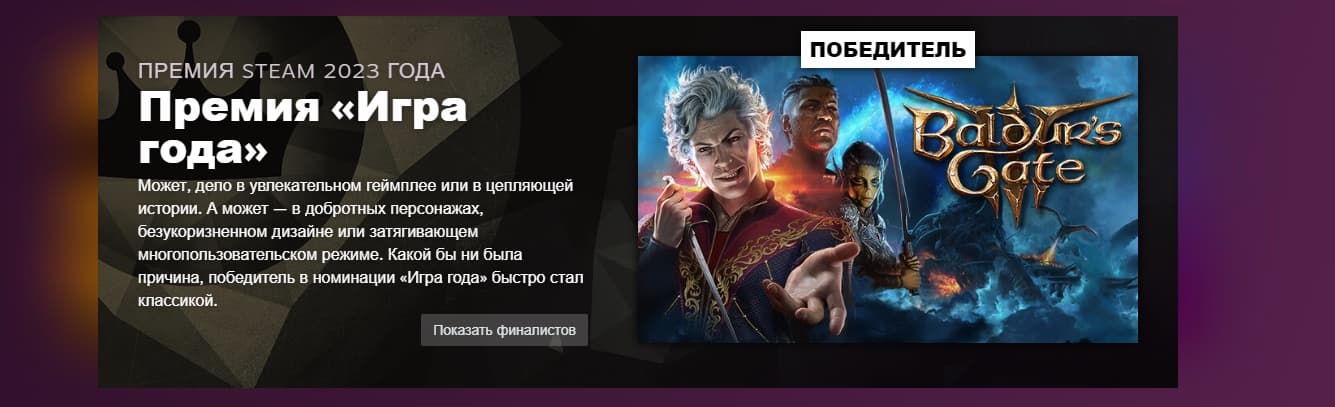 Победителем в номинации «Игра года» ожидаемо стала Baldur's Gate 3, для которой это уже далеко не первая подобная победа.