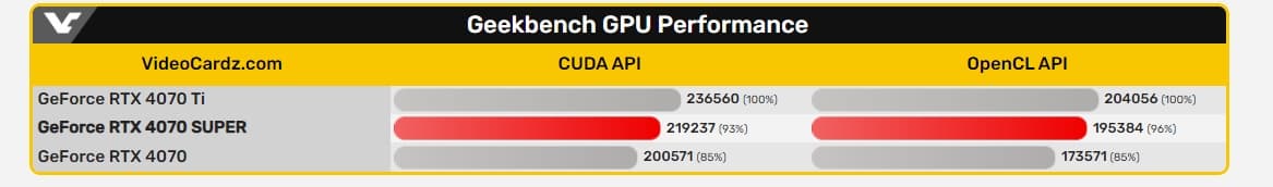 Пока что они есть только в Geekbench, но это всё равно позволяет легко оценить прирост относительно обычной RTX 4070.