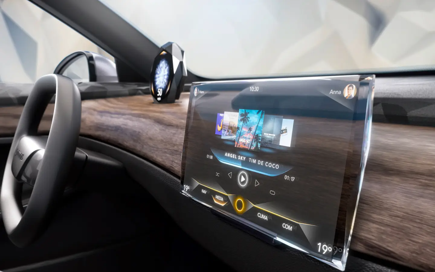 Десятидюймовый дисплей основан на новейшей технологии Micro LED, которая обеспечивает высокие значения яркости и контрастности. Панель Micro LED, генерирующая изображение, встроена в искусно изготовленный кристаллический корпус. Компания Continental разработала уникальное сочетание автомобильного дисплея и настоящего кристалла в сотрудничестве со Swarovski Mobility. За это решение технологическая компания Continental была удостоена награды CES Innovation Award за выдающийся дизайн продукта.