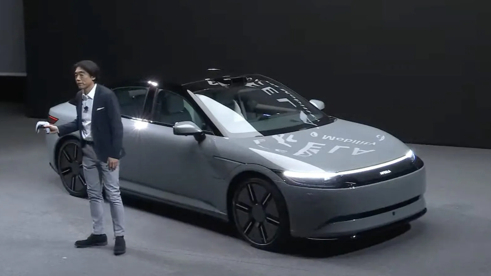 Он начал с демонстрации программно определяемой природы автомобиля, выведя его на сцену с помощью контроллера PS5. Но Ясухидэ Мизуно сразу предупредил, что это было реализовано «исключительно для сценической демонстрации».