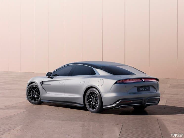 Стилистика YangWang U7 имеет поэтическое название «Врата Времени и Пространства». Автомобиль получил большие матричные С-образные фары и широкие фонари, которые, судя по изображению задней части, не соединяются. Капот с характерными «складками» на манер спорткара невелик, но это и не важно: YangWang U7 — это электромобиль, под капотом у него будет небольшой багажник.