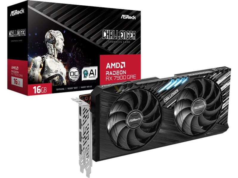 ASRock Radeon RX 7900 GRE Challenger OC предлагается за 580 евро. Длина этой модели составляет 269 мм, система охлаждения с двумя вентиляторами занимает пространство 2,5 слотов. Базовая частота GPU – 1500 МГц, частота в режиме Boost – 2290 МГц.