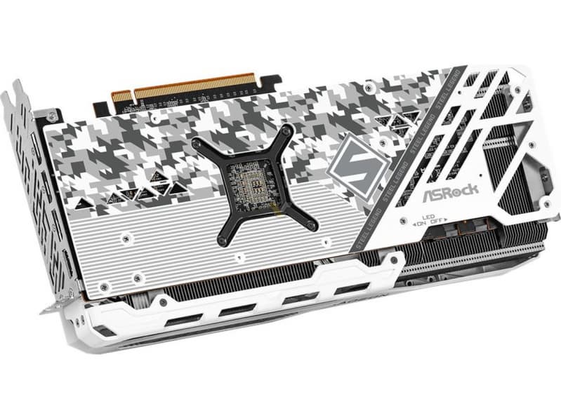 ASRock Radeon RX 7900 GRE Steel Legend OC длиннее – 304 мм и имеет улучшенную систему охлаждения с тремя вентиляторами (она занимает пространство почти трех слотов). Базовая частота – те же 1500 МГц, а вот частота в режиме Boost повышена до 2345 МГц. Цена этой модели – 600 евро.