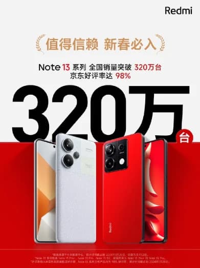 Xiaomi сообщила о том, что в Китае продано уже 3,2 миллиона смартфонов линейки Redmi Note 13. Они дебютировали на местном рынке в сентябре 2023 года, так что не прошло ещё и полугода.