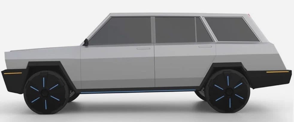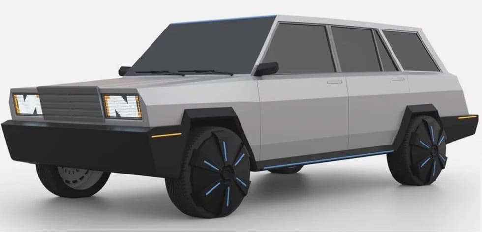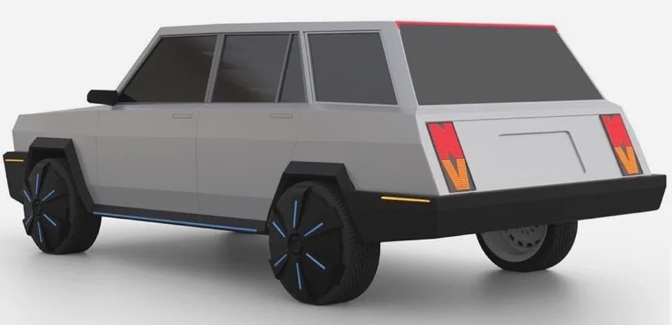 Колёсные диски, судя по их виду, полностью срисованы с дисков Cybertruck, по бокам кузова даже есть оранжевые габариты, как на американских машинах. Грани кузова нарочито острые, а ручки открывания дверей запланированы выдвижными.