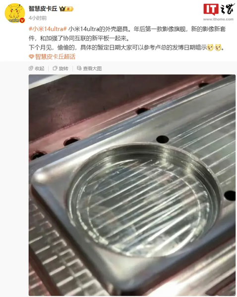 Он также поделился фотографией формы, которая используется для изготовления корпуса Xiaomi 14 Ultra. Ожидается, что он сохранит дизайн предшественника с большим блоком камеры.
