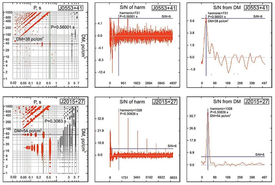 «Ежедневные круглосуточные наблюдения проводились примерно в течение 3000 дней. Продолжительность сеанса наблюдений для каждого направления на небе составляла 3,5 минуты в сутки. Поиск пульсаров осуществлялся по спектрам мощности. Для поиска слабых пульсаров спектры мощности суммировались», — рассказали радиоастрономы.