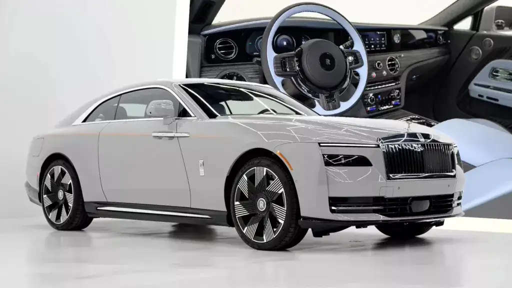 Этот роскошный электромобиль окрашен в цвет кузова Tempest Grey. Как и все другие Rolls-Royce Spectre, автомобиль оснащён двумя электродвигателями общей мощностью 584 л.с. и крутящим моментом 895 Н·м, а также аккумуляторной батареей ёмкостью 120 кВт·ч. Агентство по охране окружающей среды оценивает запас хода Spectre с 23-дюймовыми колесами в 428 км.
