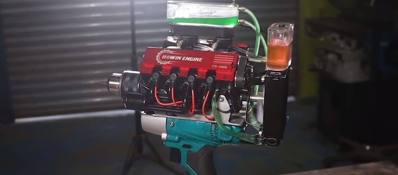 Для этого использовался 28-кубовый нитромотор V8 Toyan с мощностью около 4,3 л.с., обычно применяемый в моделировании. Этот мотор может развивать до 12 500 оборотов в минуту, чего хватает, чтобы с лёгкостью сверлить металл.