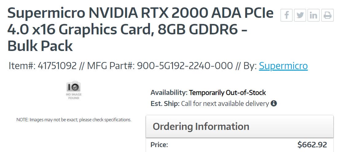 Производитель серверов Supermicro раскрыл характеристики нового ускорителя Nvidia – RTX 2000 Ada.