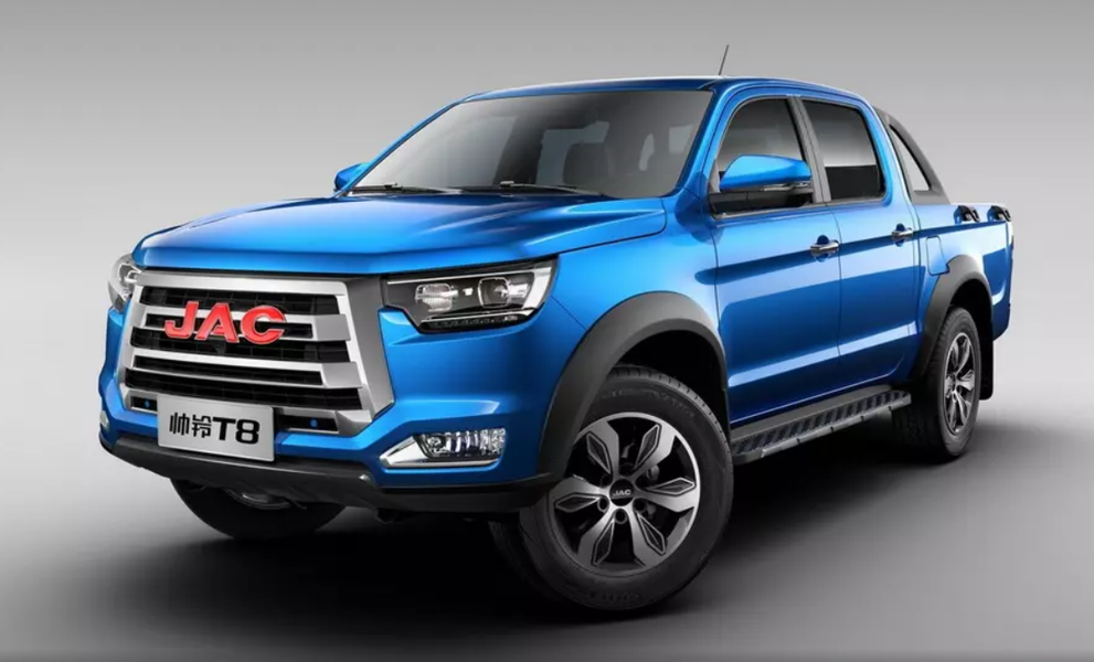 В России начались продажи нового рамного пикапа JAC дешевле 3 млн рублей. JAC T8 с 5,3-метровым кузовом, четырёхдверной кабиной и грузовой платформой размером 1,52 на 1,52 метра предлагается по цене 2 999 000 рублей, как и ожидалось ранее.