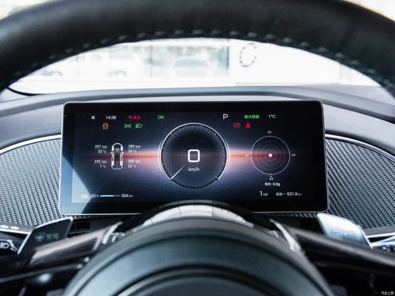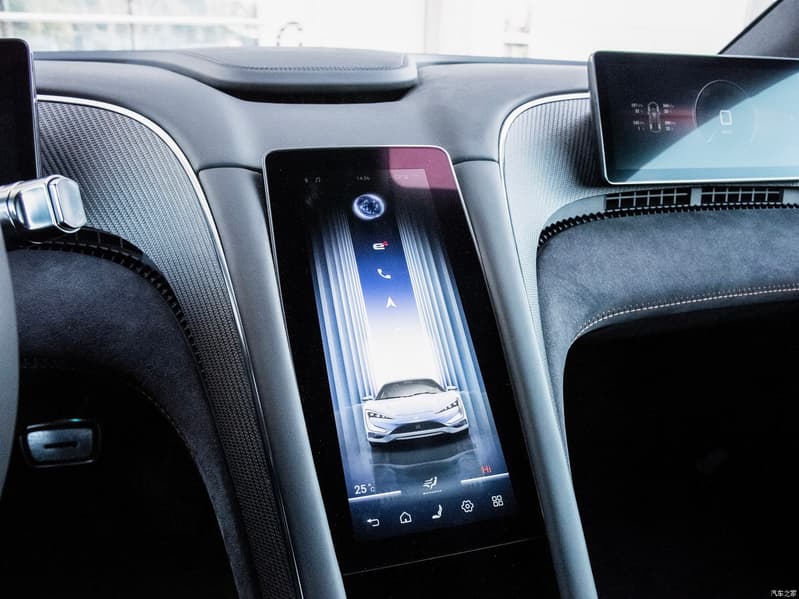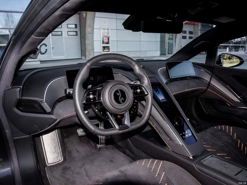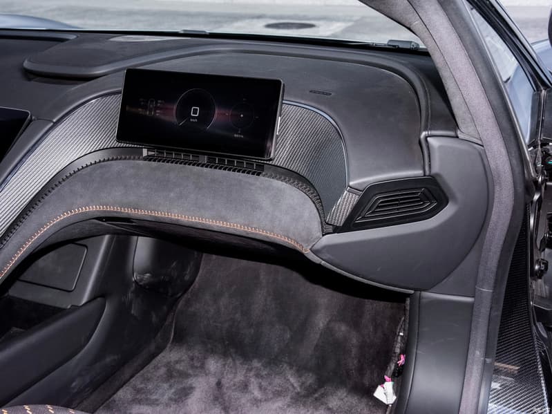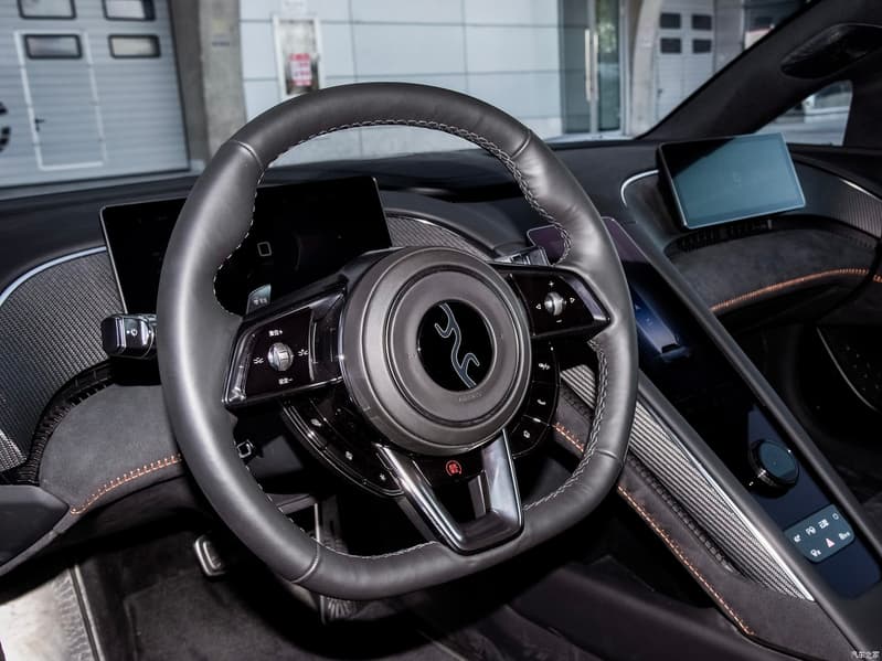 В оформлении интерьера широко используется карбон и замша. Экранов три, но они небольшие: дисплей перед водителем больше напоминает щиток современного мотоцикла.