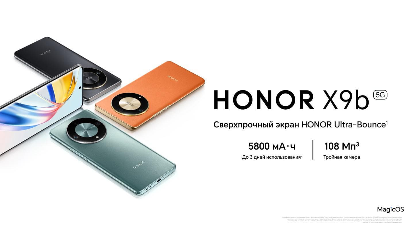 В России начались продажи смартфона Honor X9b, который оснащён сверхпрочным экраном Honor Ultra-Bounce, выдерживающим падения с высоты до 1,5 метров, а также тройной камерой и большой батареей, выдерживающей до 3 дней использования без подзарядки.