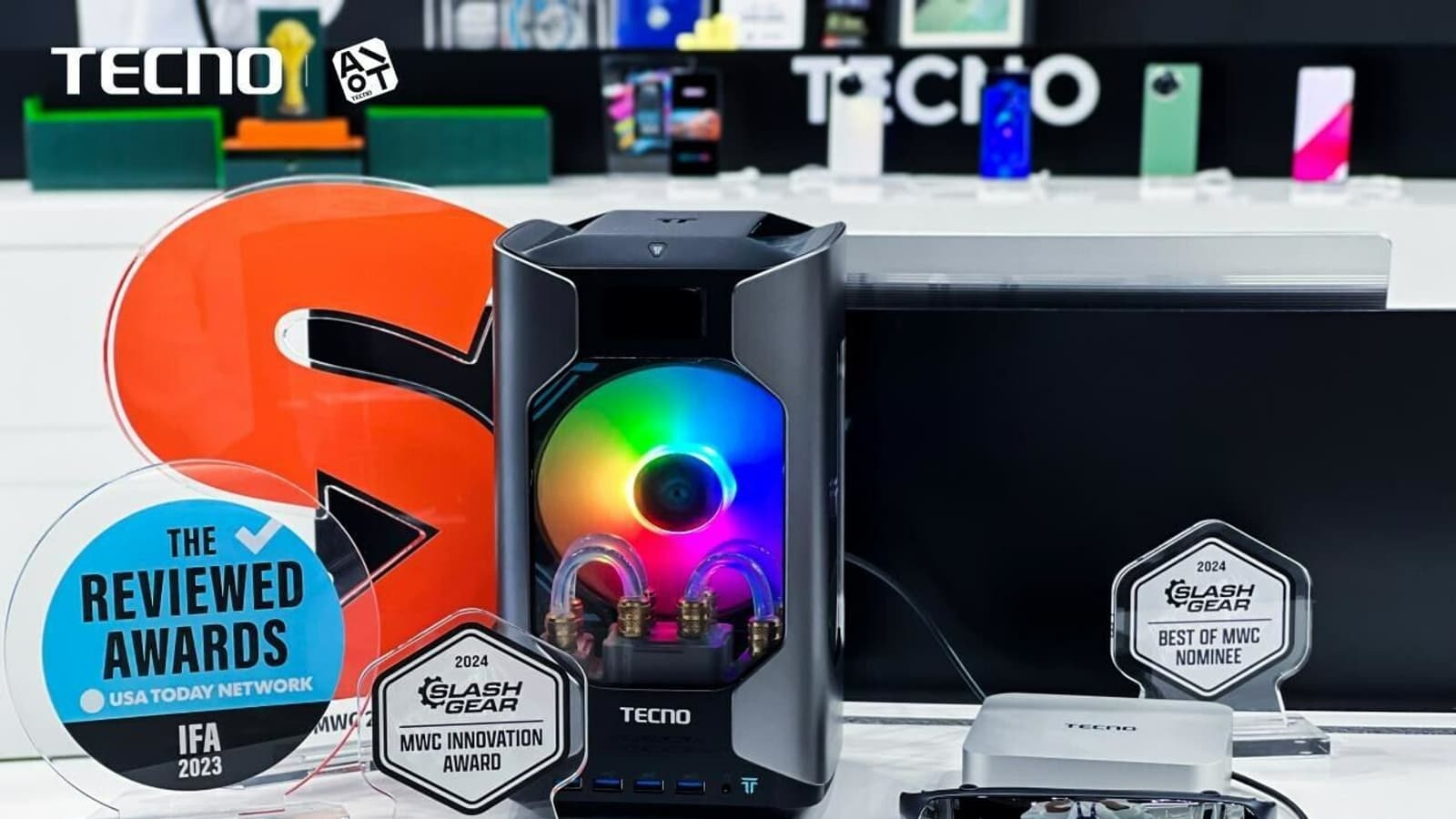 Компания Tecno представила на выставке MWC 2024, которая проходит сейчас в Барселоне, миниатюрный игровой компьютер Mega Mini Gaming G1. Производитель утверждает, что это самый компактный в мире настольный игровой компьютер с жидкостным охлаждением и дискретной видеокартой. Действительно, устройство отличается небольшими размерами, а также интересным дизайном: корпус предусматривает прозрачные панели, сквозь которые видны внутренние компоненты, и разноцветную подсветку. Также на корпусе есть небольшой LCD-дисплей, отображающий основные параметры системы.