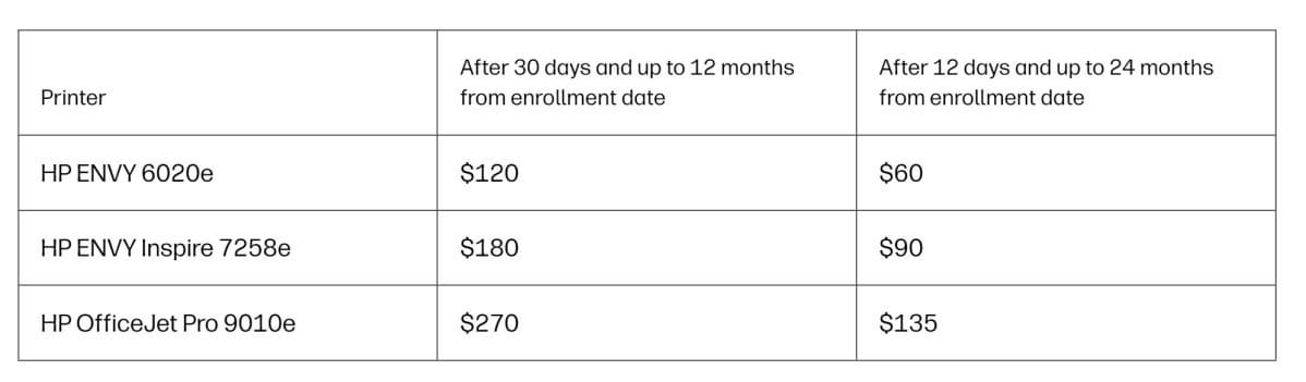 Максимум, который можно получить, — это 100 страниц в месяц для HP Envy (11 долларов), 300 страниц — для HP Envy Inspire (19 долларов) и 700 страниц — для HP OfficeJet Pro (36 долларов).