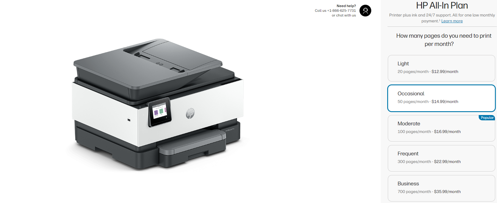 All-In Plan — это подписка, в которую входит устройство для печати и возможность печатать что-то, но с ограничениями.