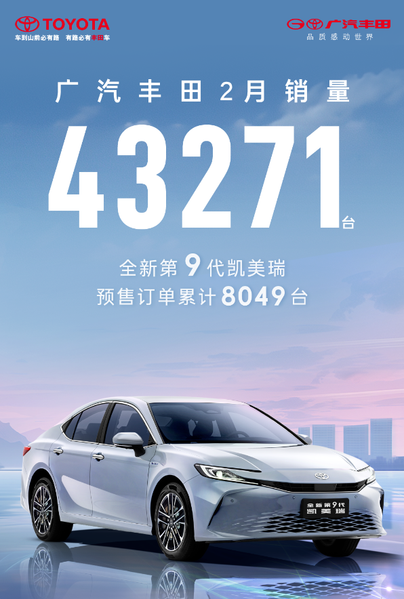 Совместное предприятие GAC Toyota отчиталось о продажах автомобилей в феврале текущего года: за прошлый месяц компания реализовала 43 271 автомобиль. Для сравнения, в январе продажи GAC Toyota составили 71 875 автомобилей. Падение продаж объясняют Новым годом в Китае (и, соответственно, спадом покупательской активности в этот период), однако продажи снизились и относительно февраля прошлого года, причем на впечатляющие 35%.