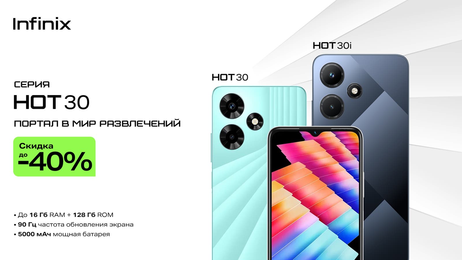 Infinix объявила о скидках на смартфоны Hot 30 и Hot 30i. В Мегафон скидки на смартфоны составят до 40%. Infinix Hot 30 (8/128 ГБ) можно купить за 10 990 рублей, а Infinix Hot 30i с таким же объёмом памяти предлагается за 8 990 рублей.