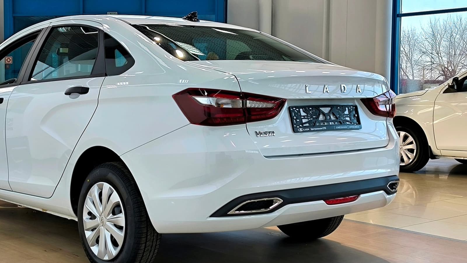 Засняли автомобиль, судя по всему, уже в салоне дилера (продажи, напомним, стартуют 11 марта). У машины обычные металлические штампованные колёсные диски и чёрные дверные ручки. Инсайдеры говорят, что и корпуса зеркал тоже неокрашенные — чёрные.