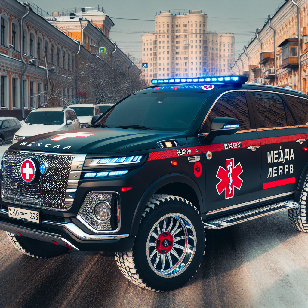 На машине цветографическая схема медицины катастроф и синие спецсигналы («ведёрки»), на зарядном лючке имеется надпись «кафедра клиники военно-полевой хирургии». Как сообщает Motor.ru, из открытой базы страховых полисов следует, что внедорожник взят в лизинг частным госпиталем «Красная звезда».