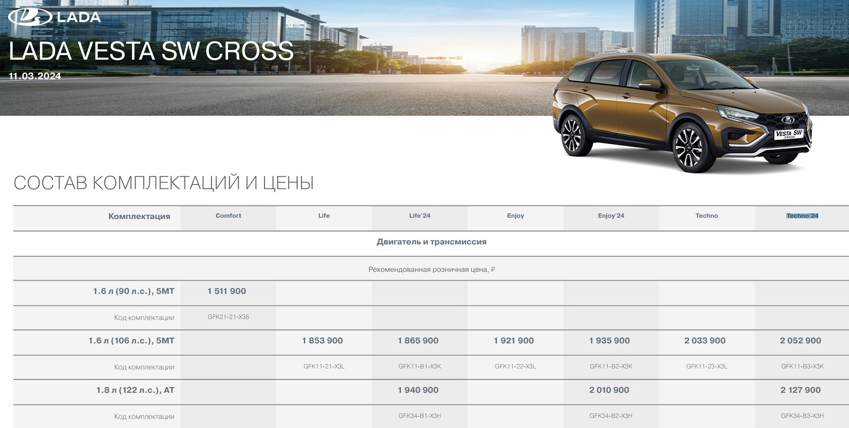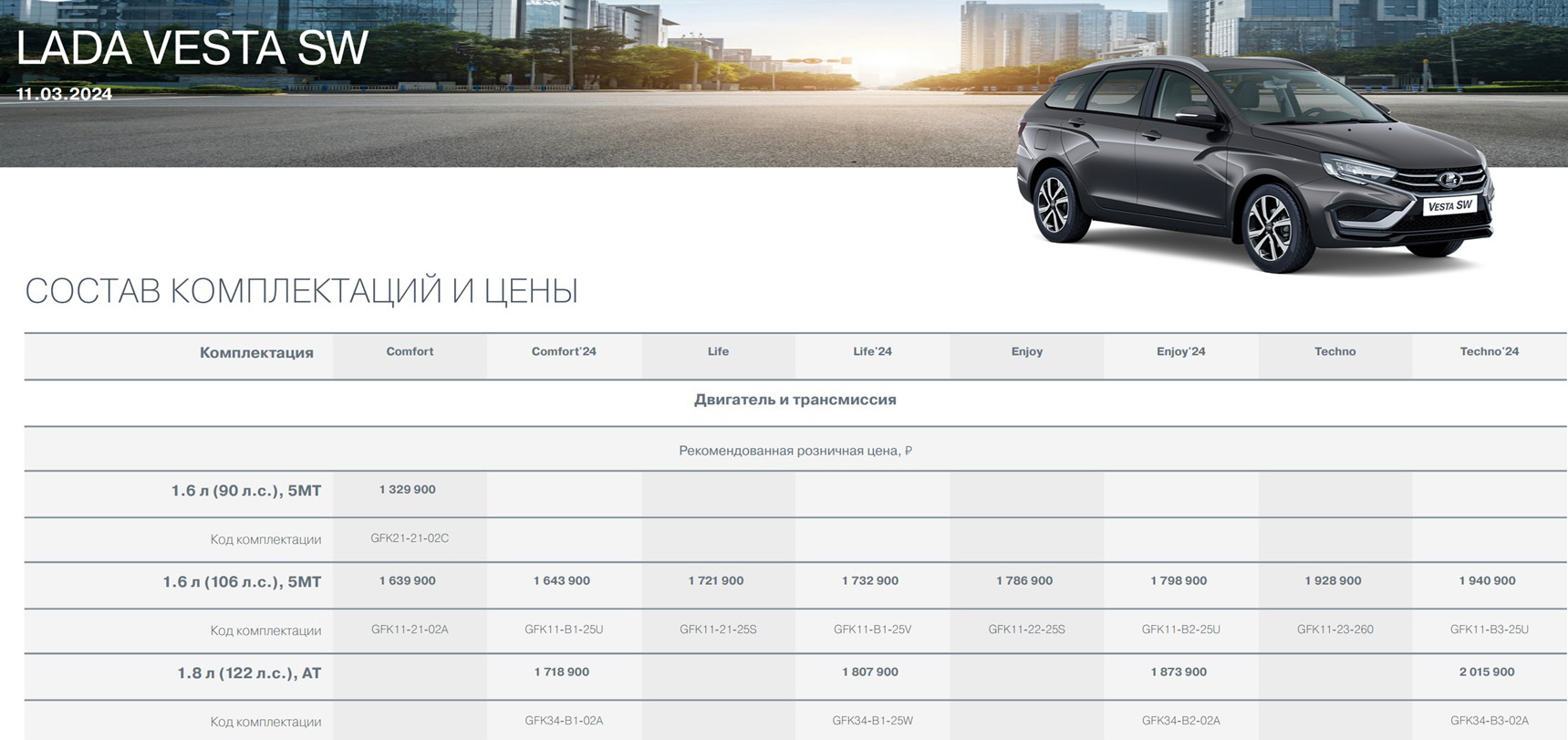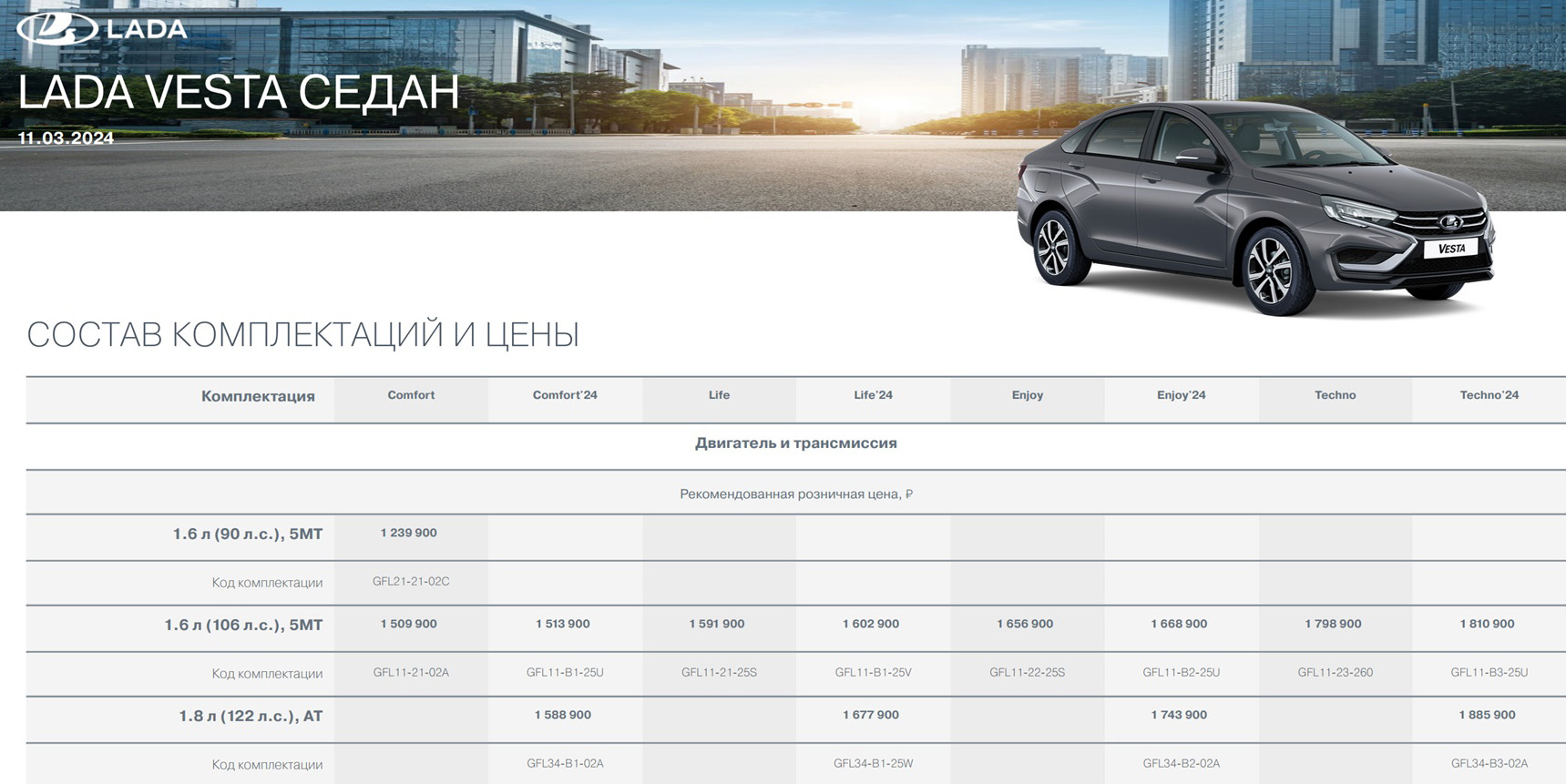 АвтоВАЗ сегодня запустил официальные продажи Lada Vesta с новой связкой агрегатов — мотором 1.8 EVO мощностью 122 л.с. и китайским вариатором. На сайте Lada.ru уже опубликованы все прайс-листы.