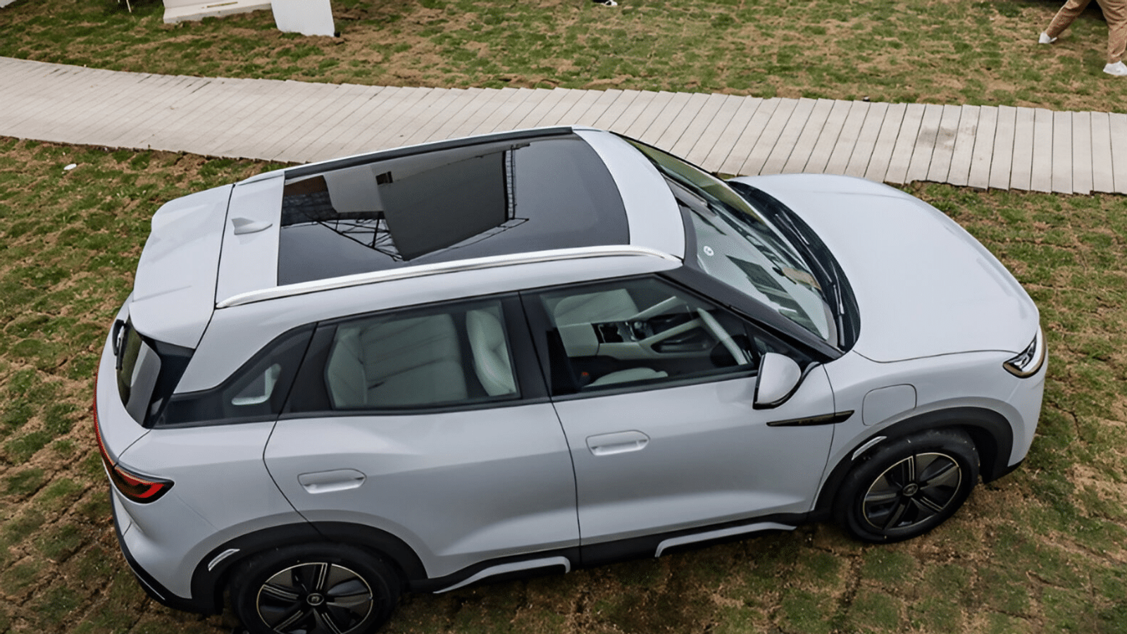 Сиденья, обтянутые перфорированным кожзаменителем, оснащены электрорегулировками. На центральной консоли находится панель для беспроводной зарядки, переключатель передач и физические кнопки для основных функций. Интерьер украшает огромная панорамная крыша. На заднем ряду — ровный пол для повышенного комфорта.