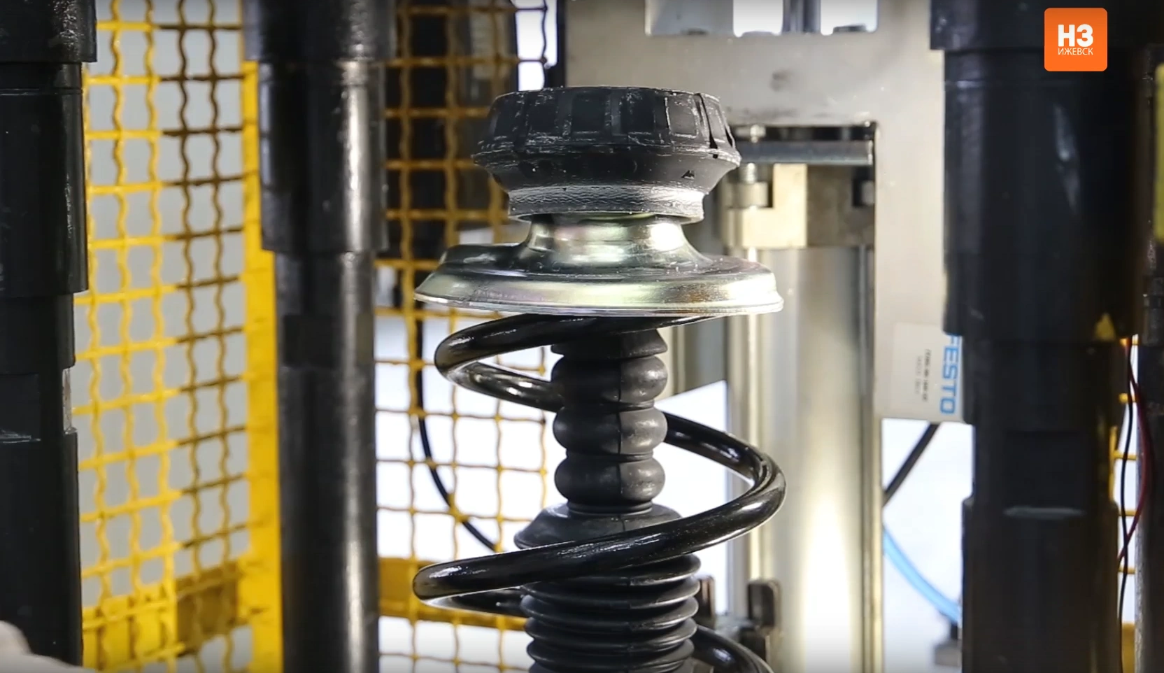 Для решения этой проблемы на участок из Тольятти были поставлены специальные стенды для сборки передних стоек. Они оснащены пневмоцилиндрами и интеллектуальными инструментами, определяющими необходимый момент затяжки. Теперь оператор закладывает стойку в стенд, запускает автоматический процесс сжатия пружины с помощью двуручного управления, а сам в это время может заниматься другой операцией, например сборкой радиатора.
