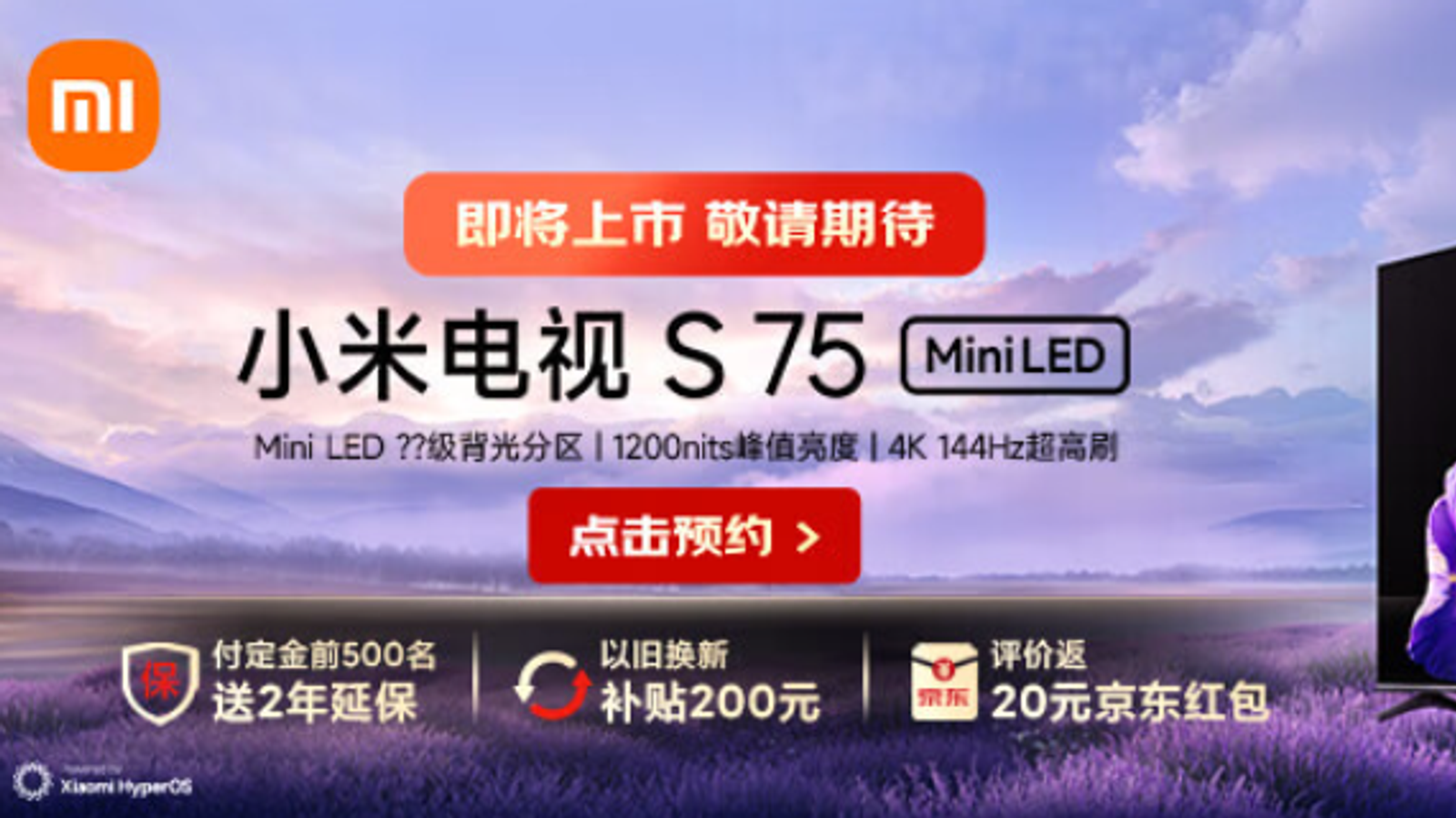 На площадке JD.com начали принимать предзаказы на новейший телевизор Xiaomi TV S75 Mini LED. Это третья модель в серии, до этого вышли ТВ с диагоналями 55 и 65 дюймов. Цены пока не объявлены, реальные продажи стартуют в Китае 31 марта.
